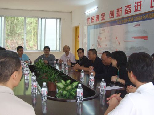 4月28日上午,广西壮族自治区交通厅党组成员、纪检组组长陈富芳、自治区交通厅团委书记覃昊、广西新生长交通集团党委副书记张友坐、总公司党委书记何洁文等向导莅临马梧路L8标、L9标施工现场检查指导事情并召开座谈会。