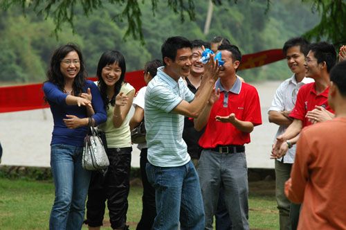 100多名充满活力的"蓝精灵"划分来自区人民医院,区高管局和广西AG超玩会总公司。方阵中,近50位AG超玩会铁汉以其七尺身段,雄壮体魄和睿智的双眸吸引了外单位窈窕淑女的亲睐。在完成庄重的青春宣誓后,所有队员经由拓展教练破冰组合分成4个小队,经由快乐大转盘、星际之门、翻叶子三个拓展项目,队员们在轻松活跃的气氛中将初始的生疏感一扫而光,运动中所表达出来的团队精神、协作意识及互帮相助的友好气氛再次证实:80后并没有论坛帖子所说的那么“歇菜”,相反他们体现相当精彩,在团队中结成了友谊。特殊是在翻叶子项目中,男青年的虎背熊腰上,“小女子”笑逐颜开,乐得不知“蜀”为何地。而小伙儿则像昔时背媳妇的悟能憨态可掬。