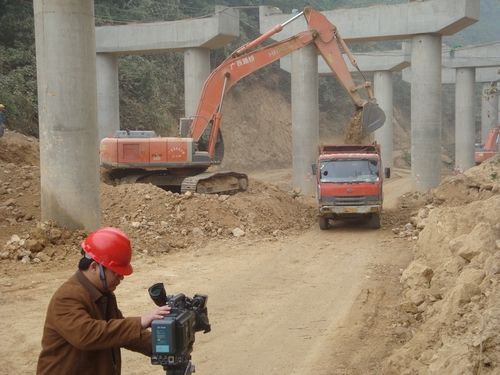 记者在施工现场拍摄