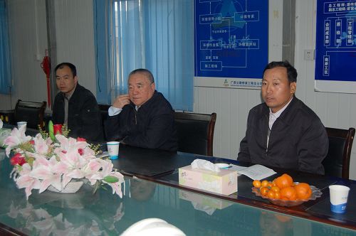 郑院士(中)、 罗业凤总司理(右一)在钻研会上听取各方对加速缆索吊装进度提出的看法